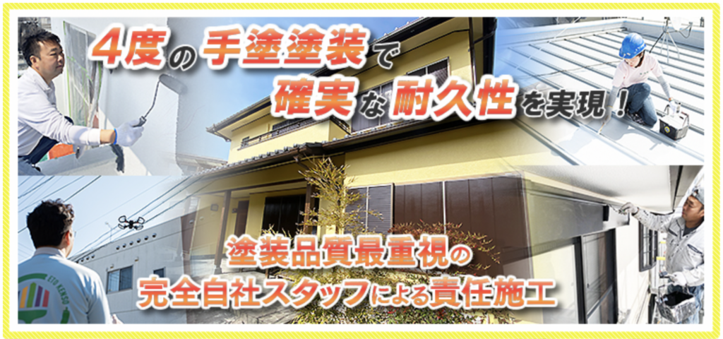 多くの塗装業者が「安さ」や「色の種類」をアピールする中、同社は「10年後の耐久性」に徹底的にこだわります。下請け業者を一切使わない「完全自社施工」体制を貫くことで、大手ハウスメーカーでは発生する高額な中間マージンを全廃。その浮いた予算を、すべて「高耐久塗料のランクアップ」と「基準塗布量を守るための職人の手間」に充てています。