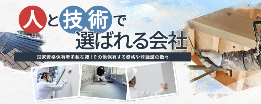 塗装店では珍しく、防水の国家資格を持つ職人が在籍しています。表面的な塗装だけでなく、雨漏りの原因となる箇所を根本から補修する技術があるため、家の寿命を確実に延ばすことができます。